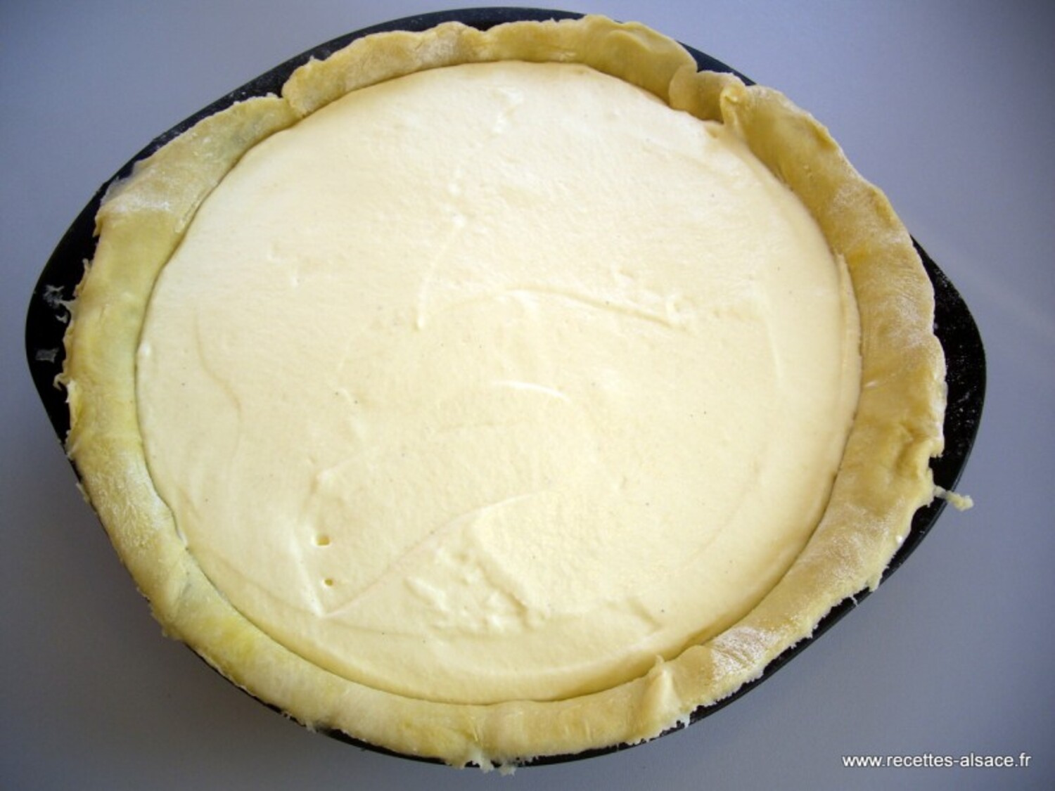 Prepare the filling and pour it on top of the dough